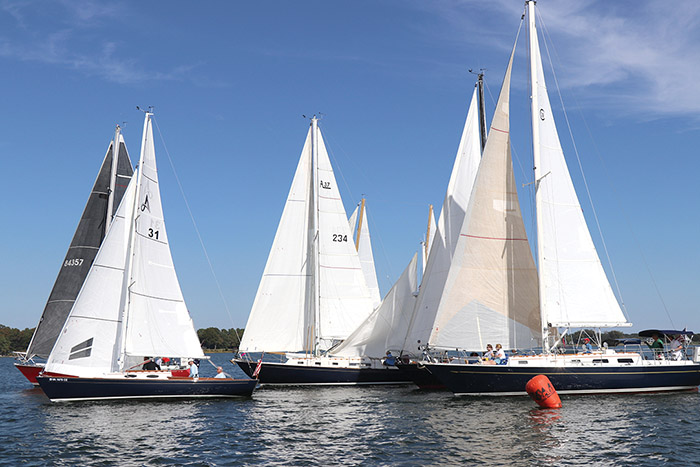 What’s the history behind this regatta? Well, it was started by two sailors, John McConnico and his friend Chuck Harney, at Yankee Point in 1989 as a race for classic-design sailboats and was called a Turkey Shoot from inception as it was initially held over the Thanksgiving holiday. It was moved to early October to attract more racers due to warmer weather and separation from a major holiday.