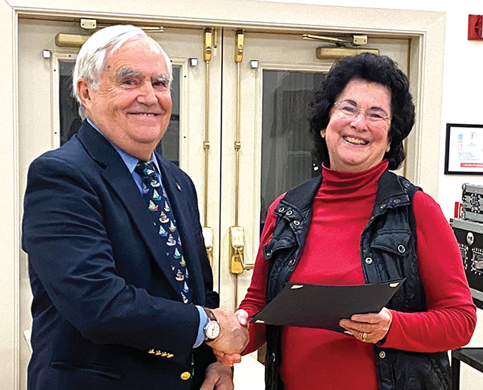 The Irvington Town Council on Thursday, December 12, unanimously adopted a resolution recognizing Ben Estes as Volunteer of the Year. From left are Estes and Mayor Julie Harris. The resolution highlighted his volunteer contributions through assisting in town events, painting playground equipment, building benches and overall devotion to his work on the Commons Revitalization Committee. Photo by AnnGardner Eubank