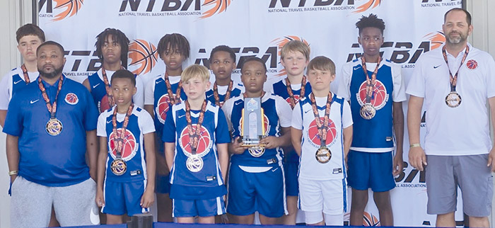 The Dreamchasers United NNK basketball team went 5-1 and finished as the runner-up among 36 teams in the National Travel Basketball Association 2025 Boys National 12U tournament July 14-19 in Myrtle Beach, S.C. The team is led by Lancaster High School (LHS) basketball coach Dwayne Pinn and LHS assistant Chris Felthouse and includes all Lancaster County players except one. From left are (front row) Pinn, Semaj Tomlin, Chase Oord, Keaton Sutton and Miles Erskine; (next row) Aiden Felthouse, Kenneth Dobyns, Milan Waddy-Brooks, Landon Pinn, Nolan Pittman, Justin Mitchell and Felthouse. Isaiah Brundt also is on the team.