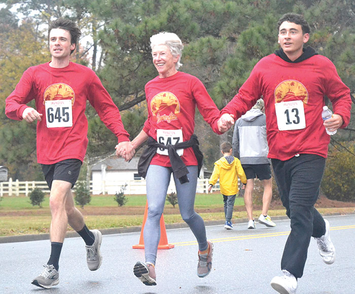 George Warren, Monique Warren and Vincenzo Amelia finished the Irvington Turkey Trot two-mile race together at 18:23. Photo by AnnGardner Eubank
