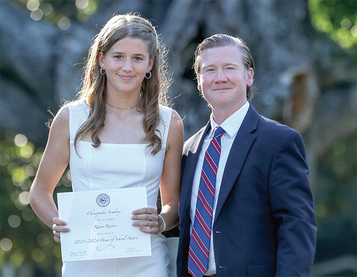 Ryann Kenner, the daughter of Gentry Kenner and Jason Kenner, was presented the Chesapeake Academy Head of School Award during recent graduation exercises for the Class of 2024.
