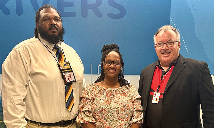 From left, high school assistant principal Markus Ferguson, assistant principal Quintese Kenner and principal Mike Myers are excited about the new programs developed for the 403 students starting the school year. Photo by Lancaster County Public Schools