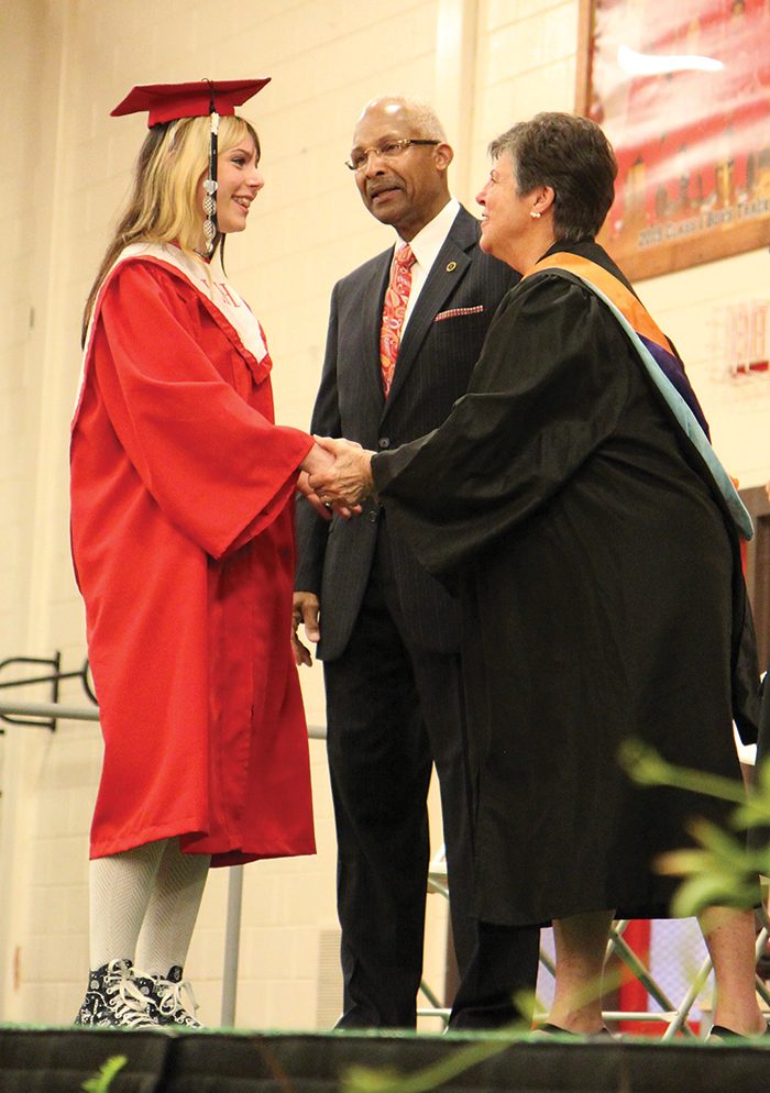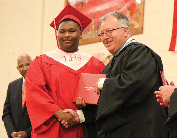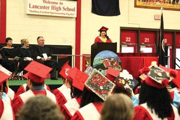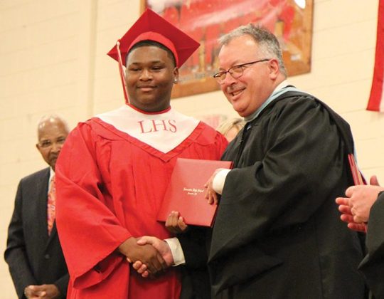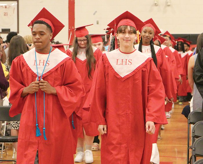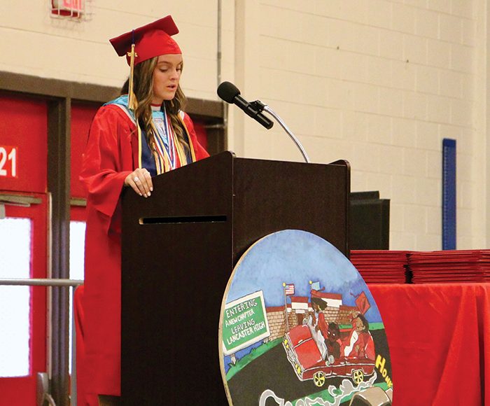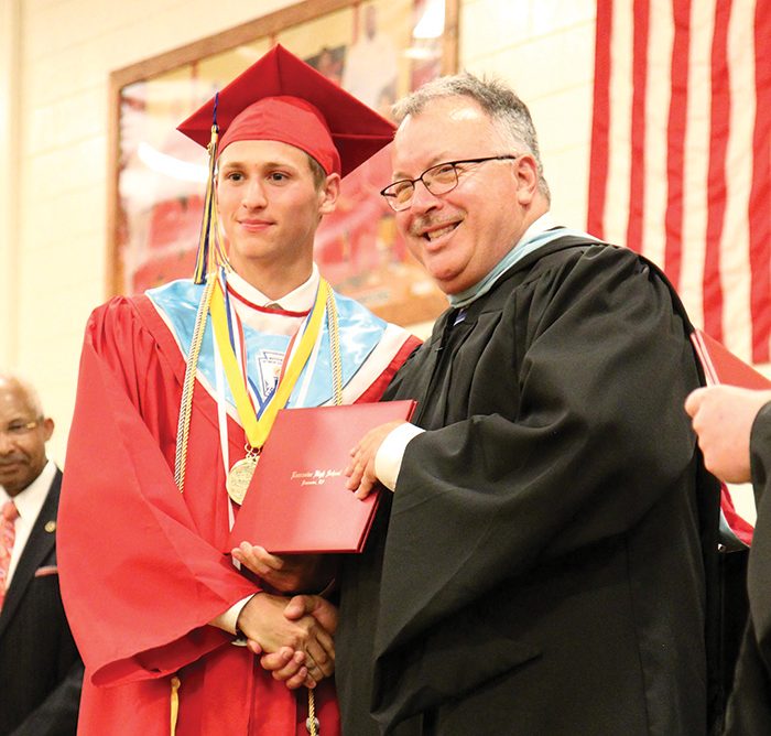 The Lancaster High School Class of 2025 gathered in the gymnasium on Friday, May 16, to say goodbye to the halls of LHS and enter the next chapter of their lives as high school graduates. Class valedictorian Josh Woolard, shown receiving his diploma from principal Mike Myers, urged his classmates, to “close this chapter and look ahead to what comes next, whether it’s college, a career, the military or something else entirely, remember this: time doesn’t quit. But that’s not something to fear, it’s something to use. Invest your time in things that matter.” (More photos by Jackie Nunnery from the Lancaster High School Commencement are included in the print and e-Edition of the Record this week)