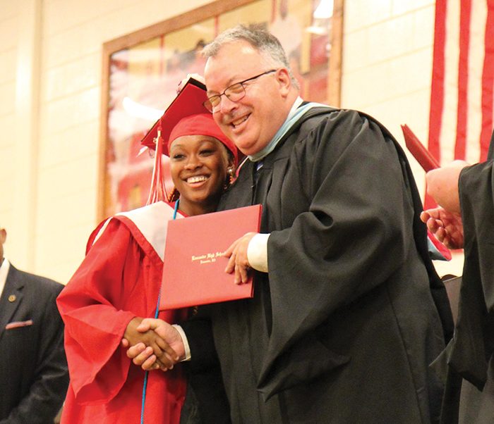 commencement speaker Julien Patterson had a few words of advice for the graduates “as they take their first few steps on the path to following their dreams.” He told them that “no one owes you anything. Everything that you get you will have to earn” and reminded them to “never allow your circumstances to define who you are.”
