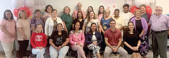 New teachers joining Lancaster schools for the 2024-25 academic session from left are (front row) Vicky Davis, Briana Navarro, Rosalyn Cezar, Renna Molina, Ben Marchetti and Glenda Bryant; (next row) Joyce Burton, Olivia Hudgins, Karen Parker, Susan Woodward, Autumn Gaskins, Maria Posada, Krista Maynard, Anita Green, Lucy Wheeler and William Norman; (next row) Natalie Seltzer, Laura Shoup, Tim Marden, Tabitha Foulkes, Leighten McCranie, Keiondra Bryant and Sarah Weston. Photo courtesy Lancaster County Public Schools
