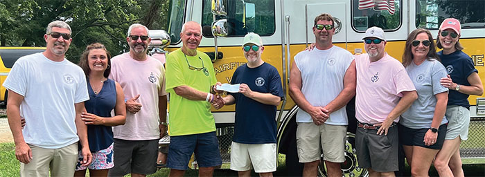 During the Pig Pickin’ on the Point at Buzzard Point Marina, foundation members “proudly presented a $6,000 check to the Fairfields Volunteer Fire Department,” reported Elizabeth Timberlake. The funds were raised through the foundation’s inaugural Summer Kickoff at the Point, held over Memorial Day weekend.
