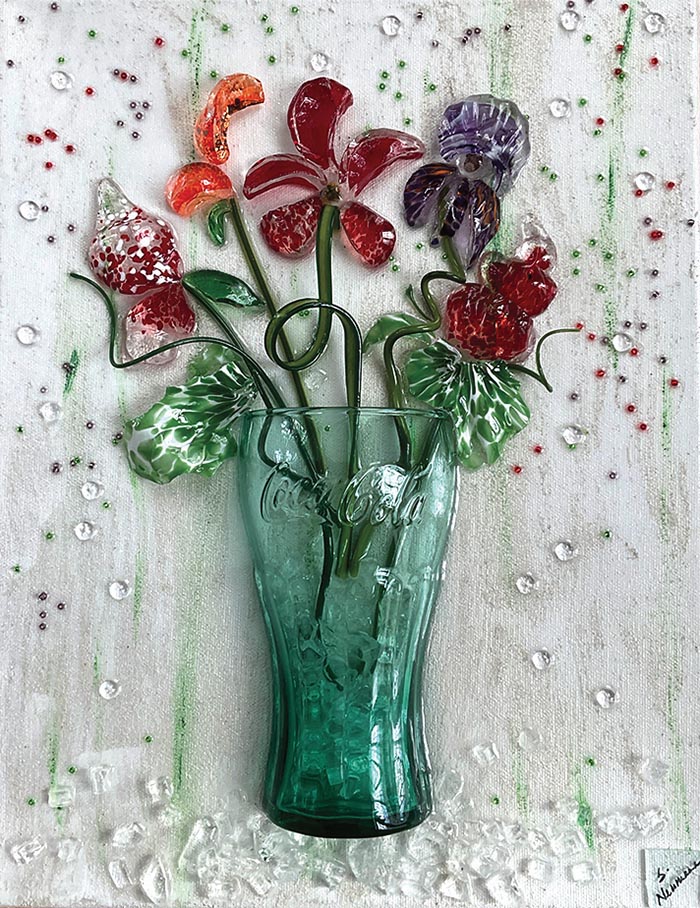 Spring bouquet in repurposed glass