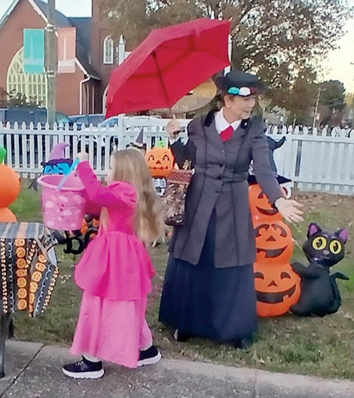 Hundreds of people paraded up and down Reedville’s Main Street Friday for the village’s traditional Halloween trick-or-treat. Homes were decorated with lights, inflatables and pumpkins. The Reedville Fishermen’s Museum, with Bethany Church, welcomed everyone for treats and entertainment. Above, Mary Poppins (Kim Hampton) guides trick-or-treaters to the museum’s candy tables. Photo by Tina McCloud