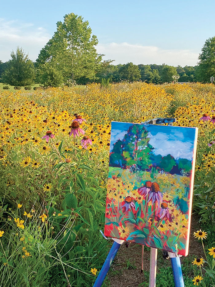 “I first planted my wildflower field four years ago with many native flowers and grasses including black-eyed Susan, echinacea, coreopsis, bachelor buttons, cosmos and purple love grass,” said Vaughn. “It gives me so much inspiration for my paintings.”