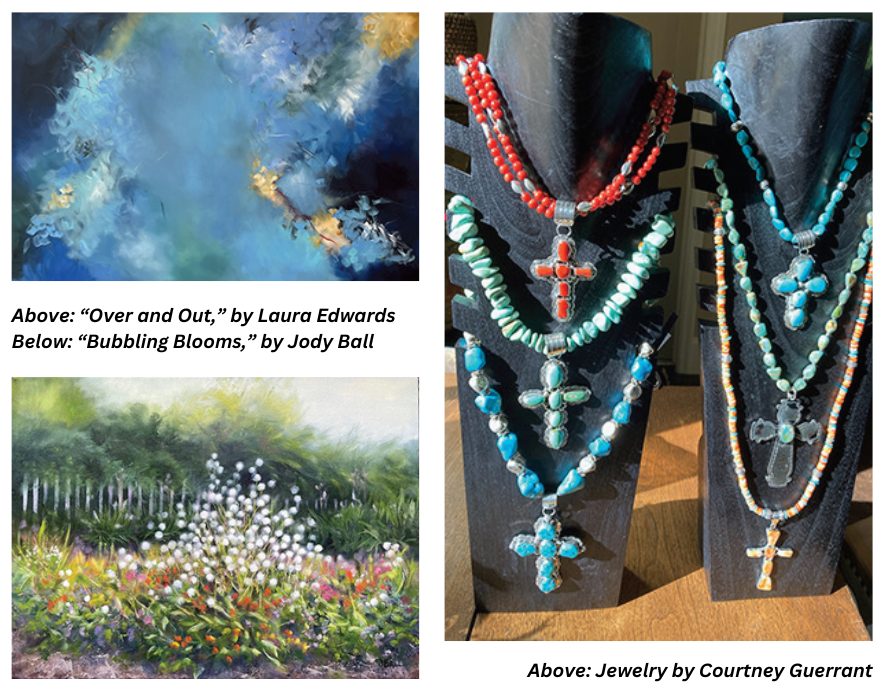 As summer days invite leisurely strolls, remember to stroll by the RAL Art Center Gallery Windows, 19 North Main Street, Kilmarnock, and check out the newest display of art. Jody Ball and Laura Edwards are oil painters who paint in very different styles; and the 3-D art window will feature the jewelry of Courtney Guerrant.